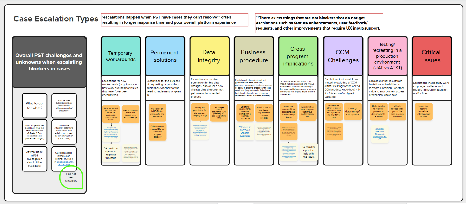 This project is from my time as a Supervisor of Digital Services, Analytics and Insights at the Minnesota Department of Human Services, Office of Inspector General. One of my responsibilities as a supervisor is overseeing a team of that supports users through a case management system. Often cases need to be escalated to product managers, developers, and business partners. Case escalation is the most labor-intensive task, and led to unnecessarily prolonged open cases and an overall poor user experiences for providers and state licensors. The project focused on redesigning the case escalation workflows to align with our partners. After reaching aligned decisions across all teams, we updated and rolled out a new process and also created new tools for our team to use when escalating cases.